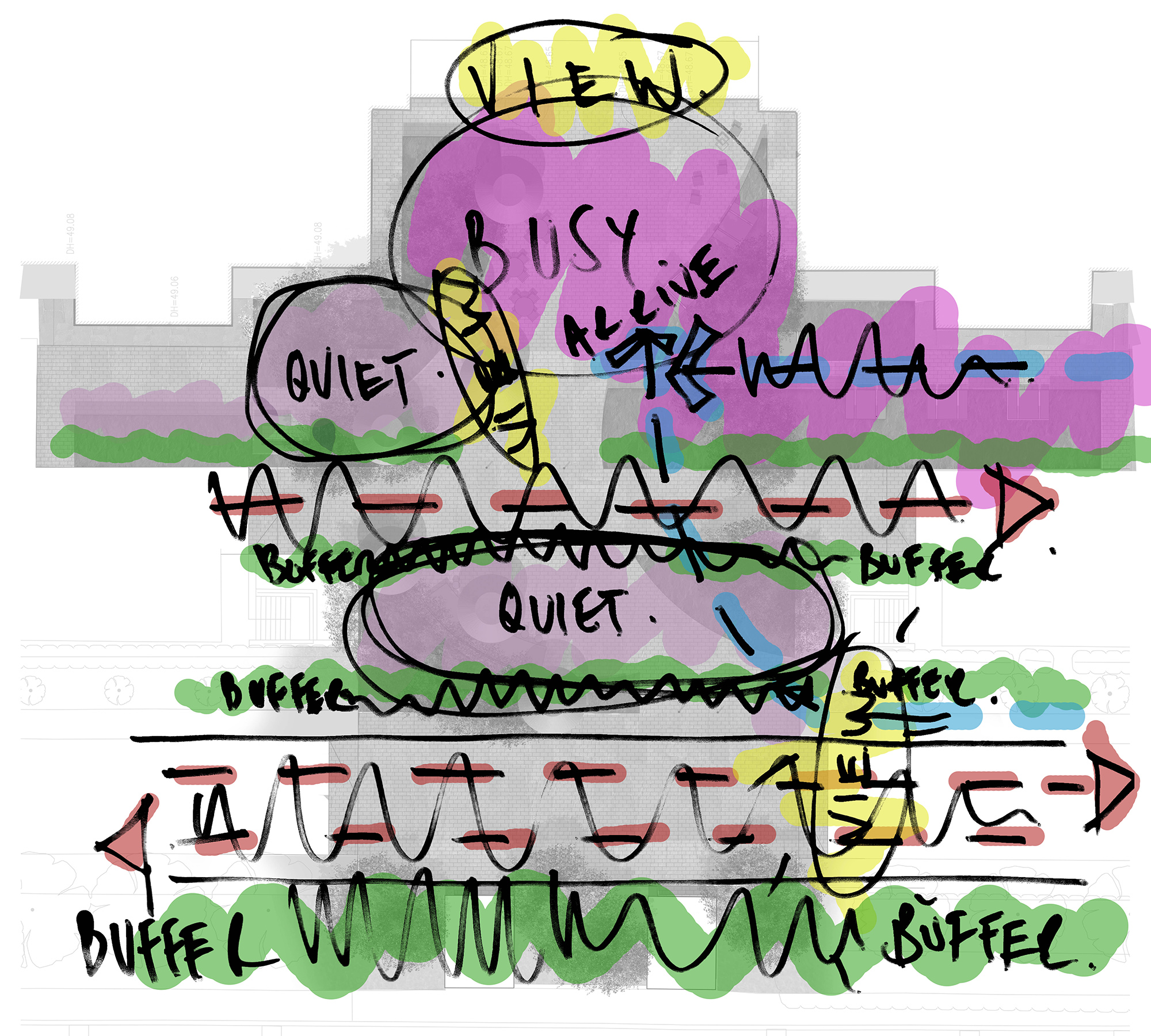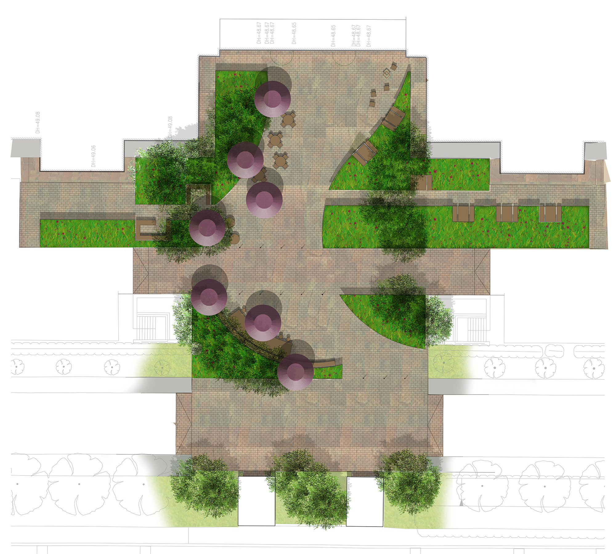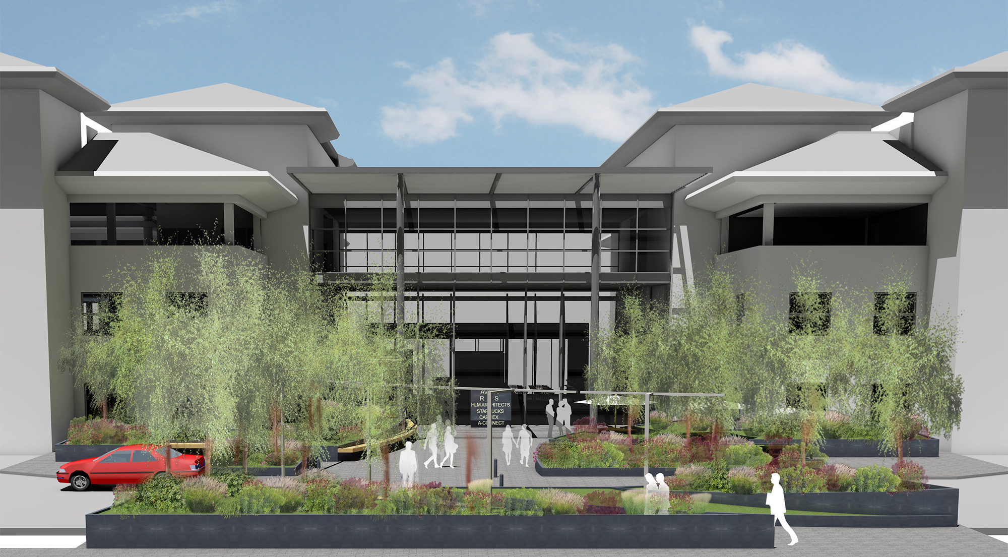 An office building built in 2000 lacked attraction to potential new tenants. The landscape design sought to create a new square to the entrance plaza providing opportunities for employees to socialise and lunch while creating a prestigious entrance space to the building for visitors and tenants