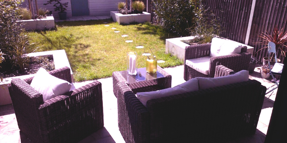We introduced planting down one side and astro turf as lawn so the family can use all weather and all seasons. The design also included a central space for people to relax.