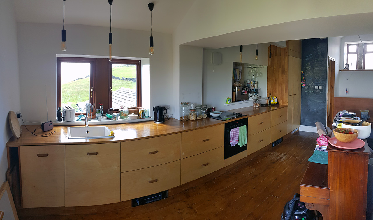 The client purchased a converted barn which had fantastic views of Stoodley Pike Monument, south Pennines, West Yorkshire. The converted barn already had work carried out on it, but needed additional design work to make sense of the layout. The existing layout had a lounge and bedroom on the first floor and kitchen, bedroom and family bathroom on the ground floor. The client wanted to rationalise bedrooms onto one floor and combine the kitchen and lounge onto another floor. Reed Studio proposed to move the kitchen upstairs with the lounge to create an open kitchen dining with a small snug around a log burner. This freed up the original upstairs bedroom as a second lounge/guest bedroom. The existing kitchen on the ground floor was converted into a bedroom and a small store. The result was an upside down layout to exploit the breath-taking views of the surrounding countryside.